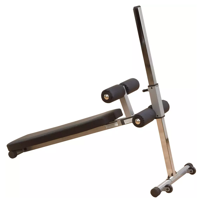 Body-Solid Pro-Style Ab Board, Centered on a telescoping 2"x 2" steel beam, our Pro-Style Ab Board adjusts to 12 positions for increased or decreased difficulty when doing sit-ups or crunches. Featuring an extra wide, extra thick double-stitched DuraFirm"! pad and oversize 8" foam rollers. Ideal for home and commercial use. 52"H x 54"L x 24"W