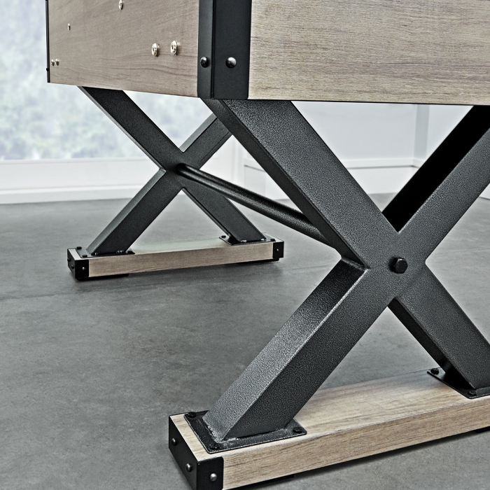Unique, textured black powder coated metal "X" frame base for increased stability