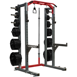 The premier half cage. This is Legend's top-selling cage among high schools and those with floorspace and/or budget concerns. The Legend Fitness Half Cage features an open design wide enough and deep enough to accomplish all of your goals, yet its footprint is small enough to allow you to keep more space in your weight room. A 3″ x 3″ frame with only 8 frame bolts (compared with the competition’s 20 or more) means that this is the most rigid half cage you’ll look at today. Or any day.