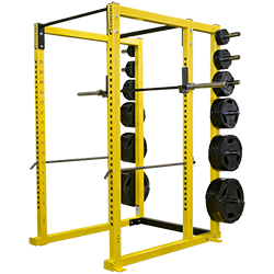 The foundation of our Performance Series line of American made cages, the Power Cage has the most accessories and options of any cage in the Legend lineup. Fabricated entirely of big, beefy 3″ square tubing, the Power Cage has tons of features. Hole spacing on the uprights is 2″ center-to-center to maximize adjustability. There’s 42 inches of room inside the massive uprights, 12 welded chrome pegs stand out in the rear for weight storage, the five-piece welded J-hooks are the strongest in the industry, a chin bar is up top, and it has a strong, wide base that is five feet from front to rear. Also, when used with a Three-Way Utility Bench, every major lift can be accomplished in one location. It would be quicker to list the exercises you CAN’T do with this cage.