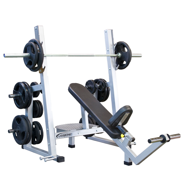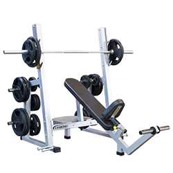 Build the upper chest effectively and safely with our Pro Series Olympic Incline. The 3241 has several features that elevate it above our standard Olympic incline: