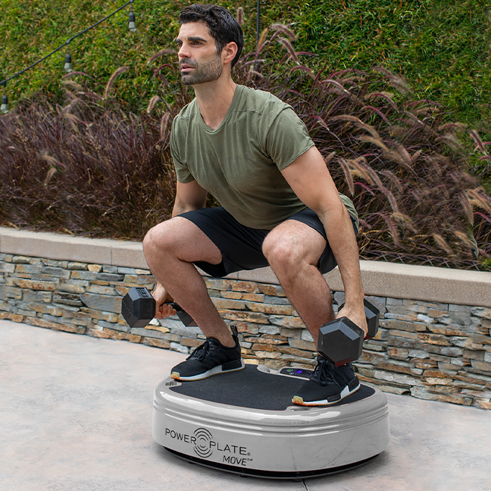 Power Plate vibrates up to 50 times a second sending tiny vibrations through your body. These tiny micro vibrations activate more muscles, burn more calories, improve circulation, and assist muscle recovery.