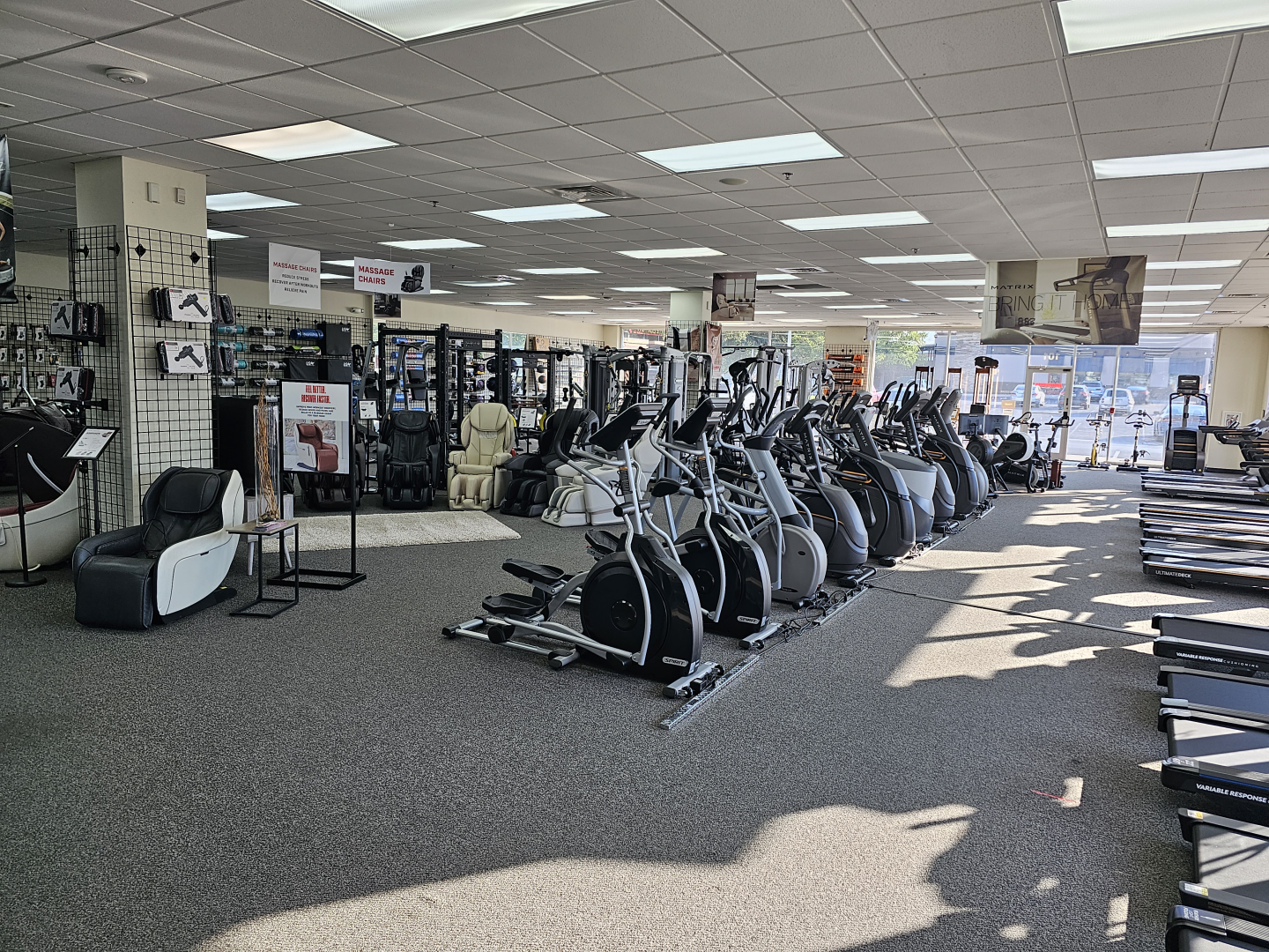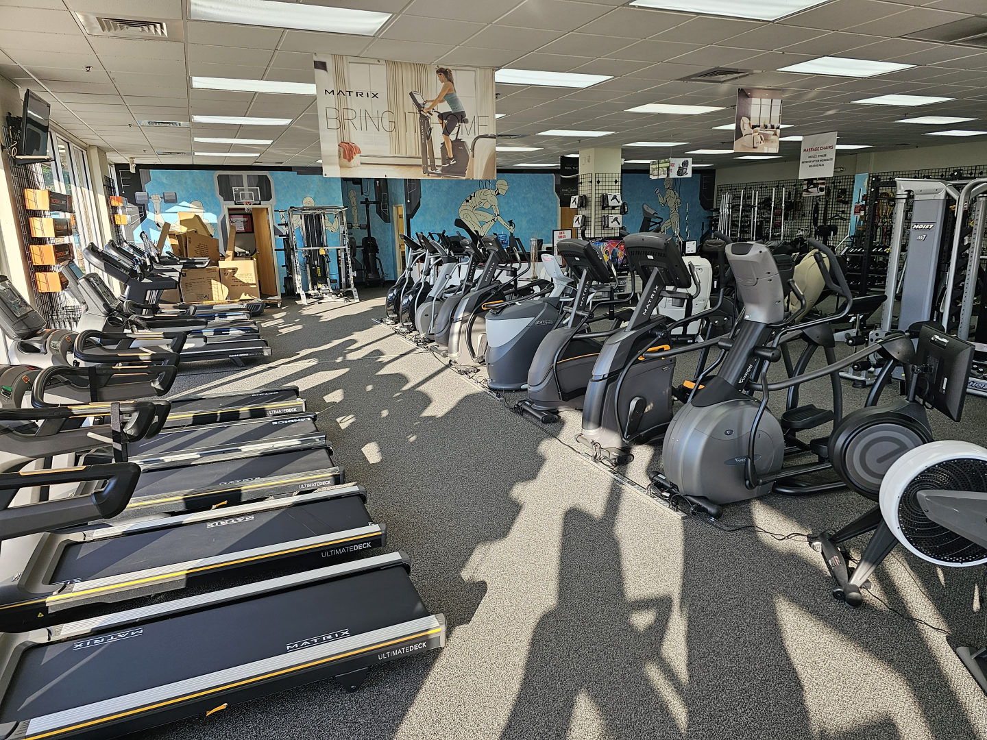 What's great is all our treadmills, ellipticals, exercise bikes and strength equipment can be seen and tested in our showroom or any of our other facilities. We can help you put together a specialized workout station with specific pieces and even organize it by your favorite brand/s. We carry an assortment of top home gym brands like Matrix Fitness, Octane Fitness, Landice, Horizon Fitness and more.