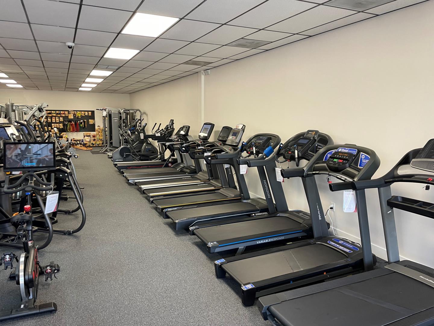 What's great is all of our treadmills, ellipticals, exercise bikes and strength equipment can be seen and tested in our showroom or any of our other facilities. We can help you put together a specialized workout station with specific pieces and even organize it by your favorite brand/s. We carry an assortment of top home gym brands like Matrix Fitness, Octane Fitness, Force USA, Tonal, Horizon Fitness and more.