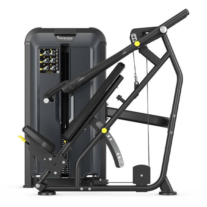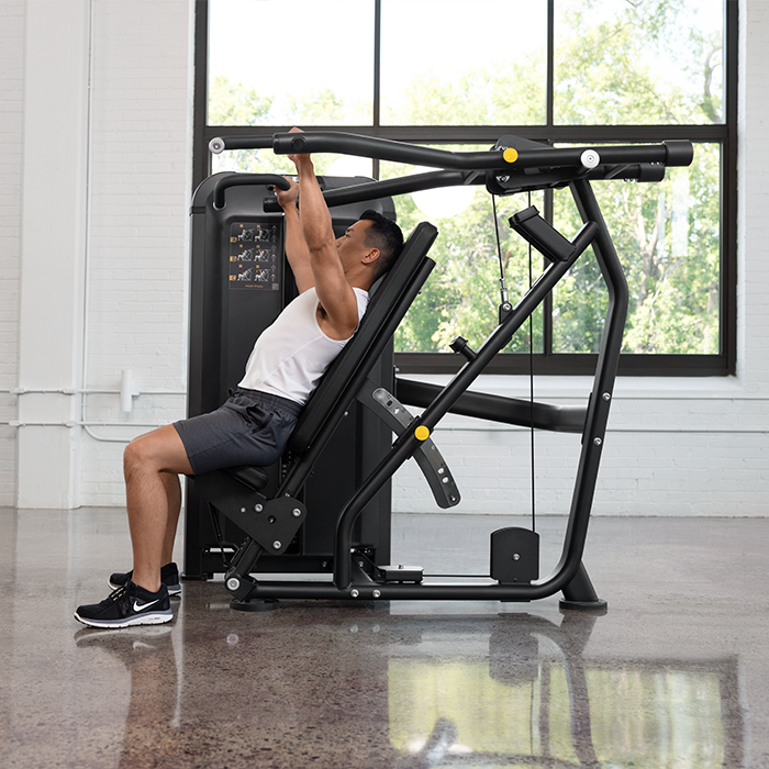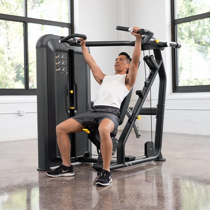 Now strength training enthusiasts can build balanced upper-body strength with a selectorized multi-press station that will fit your commercial fitness facility as well as it fits everyone you serve. From precise body positioning geometry to moisture-resistant cushioning to welded-steel frames, we designed every detail for performance, comfort and durability in tough, high-traffic fitness environments.