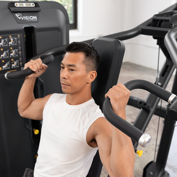 Now strength training enthusiasts can build balanced upper-body strength with a selectorized multi-press station that will fit your commercial fitness facility as well as it fits everyone you serve.